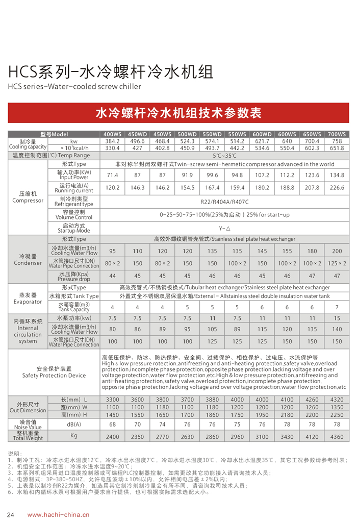1、采用國際最先進的半封閉螺桿壓縮機,電機、壓縮機一體化,無軸封滲漏之慮;電器及制冷系統原器件全部為世界著名品牌;
